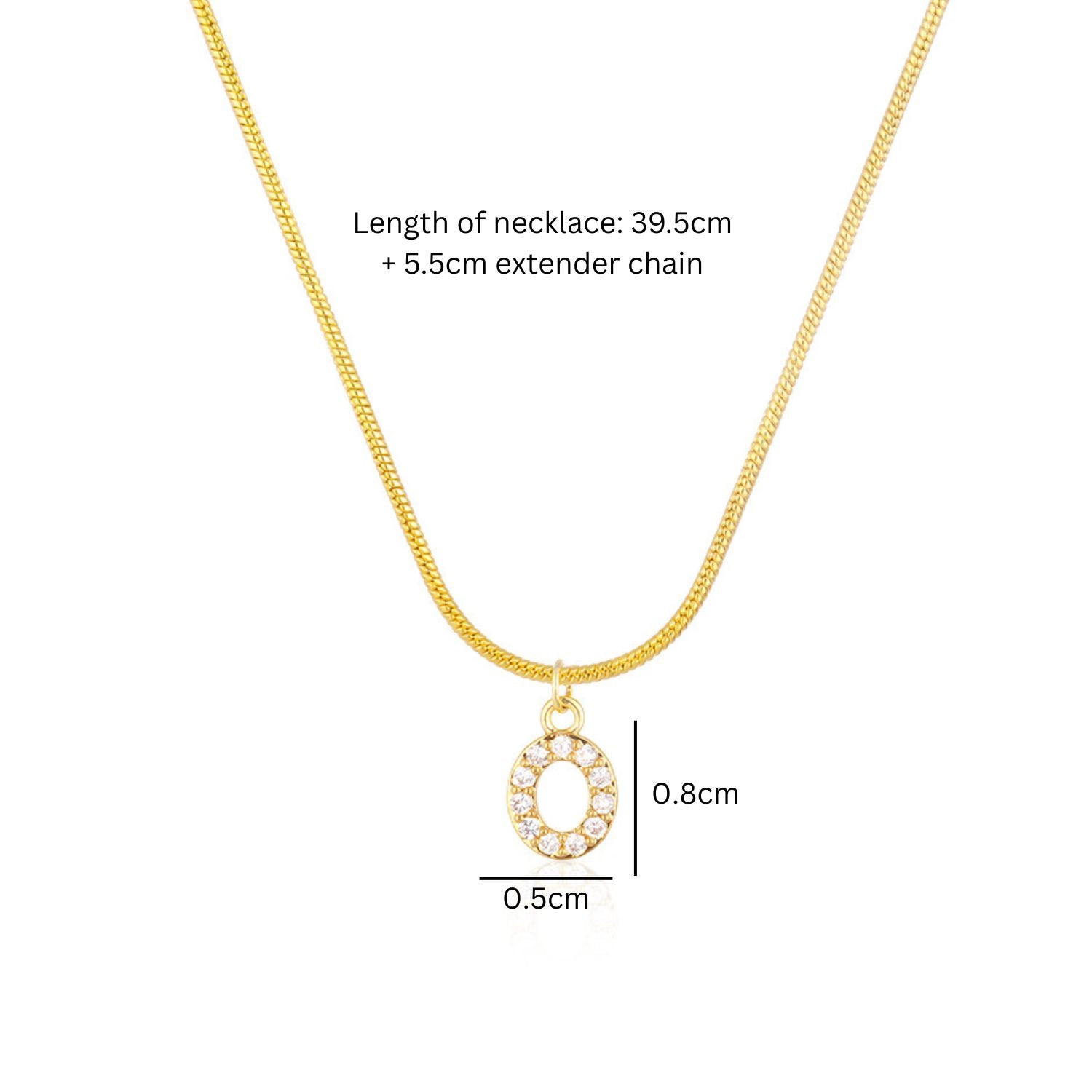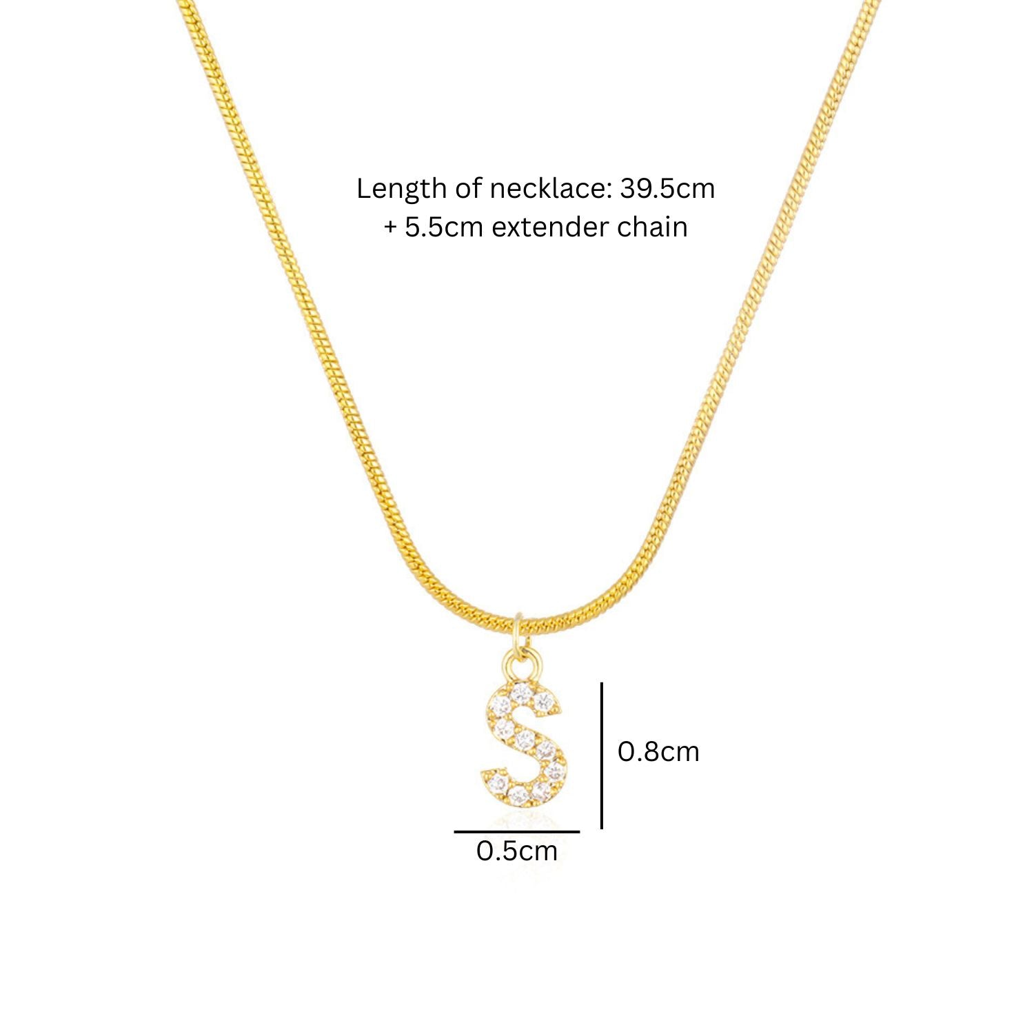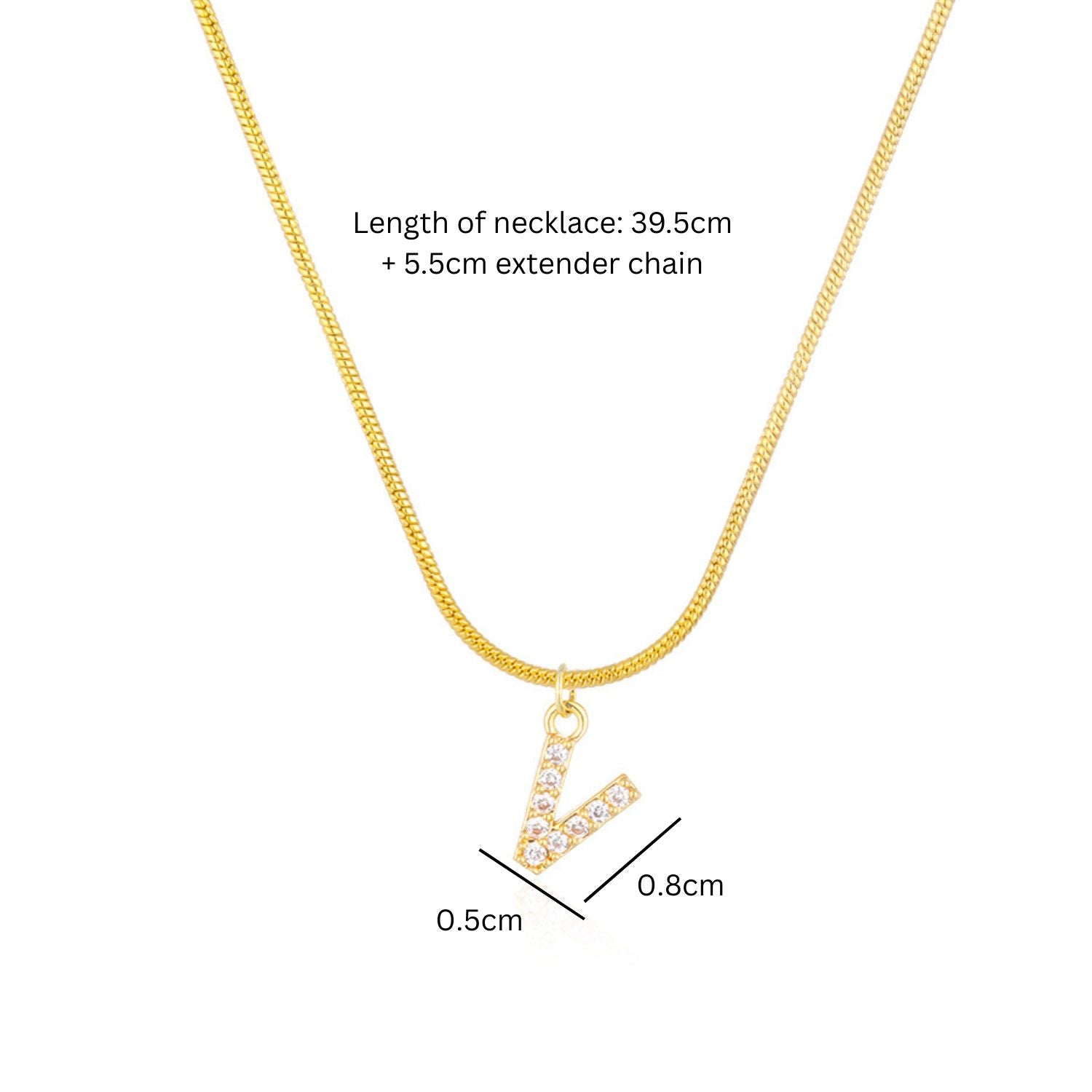 - Length of necklace: 39.5cm + 5.5cm extender chain, letter: 0.8x0.5cm