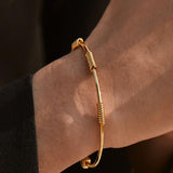 This 18K Gold plated bracelet features an open design, suitable for casual and formal outfits.