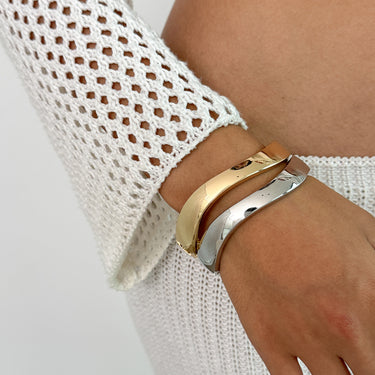 A sleek and modern cuff bracelet crafted with a smooth, polished finish. Its clean curves make it a versatile accessory that pairs effortlessly with both casual and party looks. Lightweight yet durable, this bracelet adds a touch of understated elegance to everyday wear.