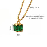 The Verdette Necklace Set brings together the radiant Verdette Pendant Necklace and the elegant Verdette Drop Earrings in a perfectly matched duo. With rich emerald-cut green stones set in gleaming gold, this necklace set is your go-to for timeless sophistication with a modern, effortless twist. Crafted from titanium steel, vacuum-plated with three layers of 18K gold for lasting shine and durability.