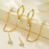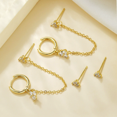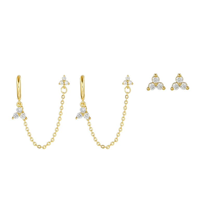 Minimal, yet memorable — Virelle White Earring Set is where refined sparkle meets soft edge. Featuring dainty crystal trios linked with a sleek gold-plated chain, this set is perfect for second piercings, stacks, or worn solo for a statement of subtle elegance. Lightweight, versatile, and made to move with you.