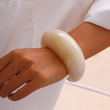 Turn heads with this oversized beige acrylic open cuff bracelet, designed for bold styling and effortless boho charm. Its chunky silhouette makes it a perfect statement piece for beach days, vacations, or high-fashion outfits.