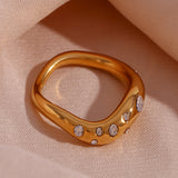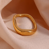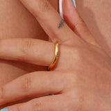 Enhance your jewelry collection with this 18K gold-plated wavy solid ring set (pack of 2). Featuring a modern wavy design and a tarnish-resistant finish, these versatile rings offer lasting elegance. Wear them together or separately to complement any outfit with a touch of sophistication.
