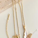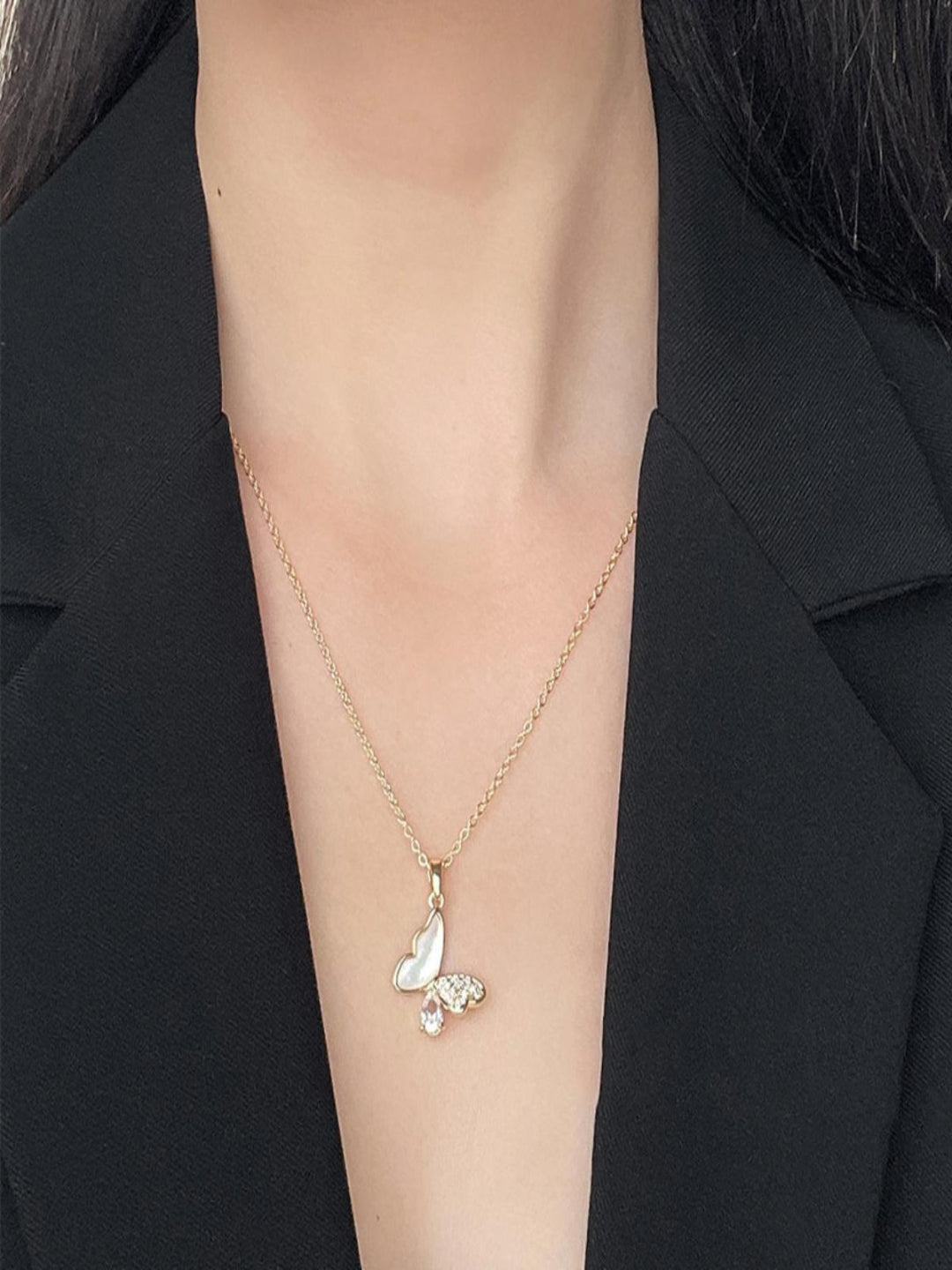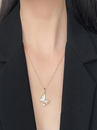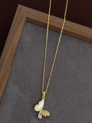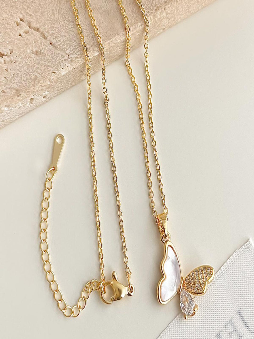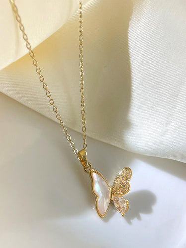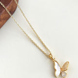 Embrace the elegance of nature with the White Shell Butterfly Pendant Necklace. This delicate piece combines the natural shimmer of white shell with the sparkle of zircon accents, creating a beautifully balanced design. Plated in 18K gold, this necklace is both waterproof and anti-tarnish, ensuring it stays as radiant as you are.