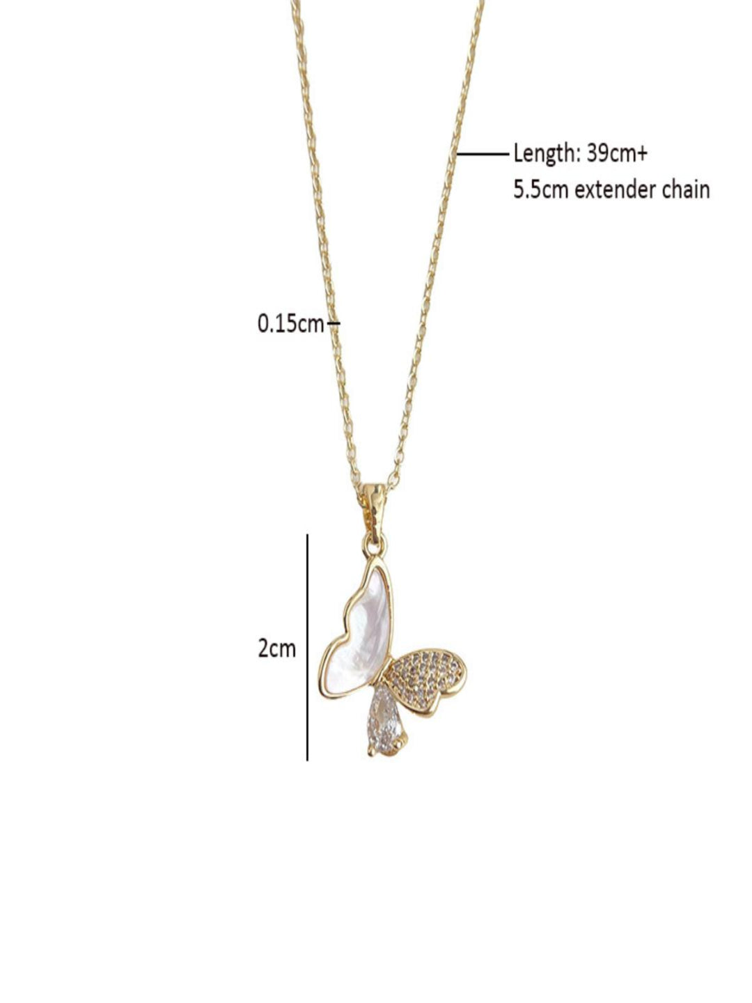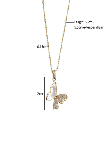 - Length: 39cm+ 5.5cm Extender Chain, Width: 0.15cm, Butterfly Length: 2cm