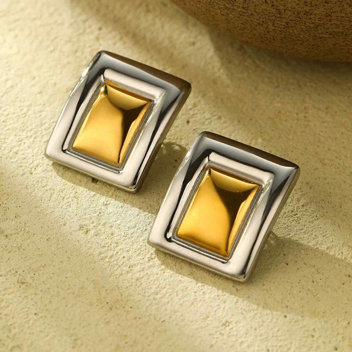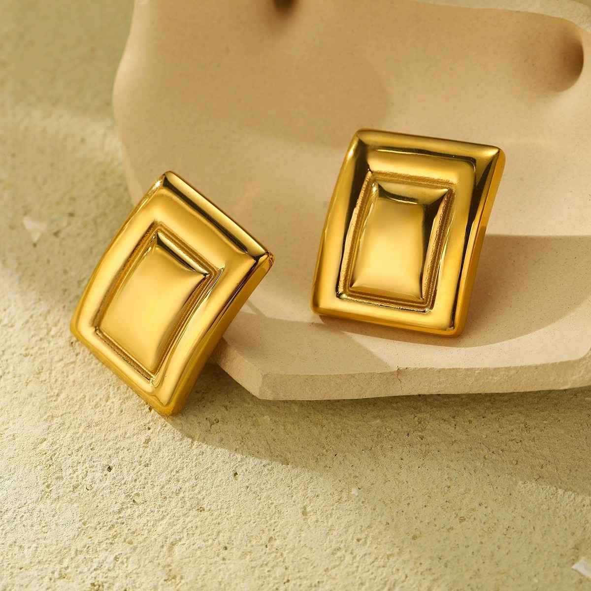 Make a statement with these 18K Plated Bold Rectangle Studs, designed with a chic two-toned finish for a modern and edgy look. These chunky party earrings combine geometric elegance with bold style, making them perfect for elevating both casual and festive outfits. Crafted from 304 stainless steel, vacuum-plated with three layers of 18K gold, with a waterproof and anti-tarnish plating, they promise lasting shine and durability for regular wear. The strong rectangular silhouette adds a sophisticated edge to your accessory collection. A versatile gift choice for women and girls who love standout statement jewelry